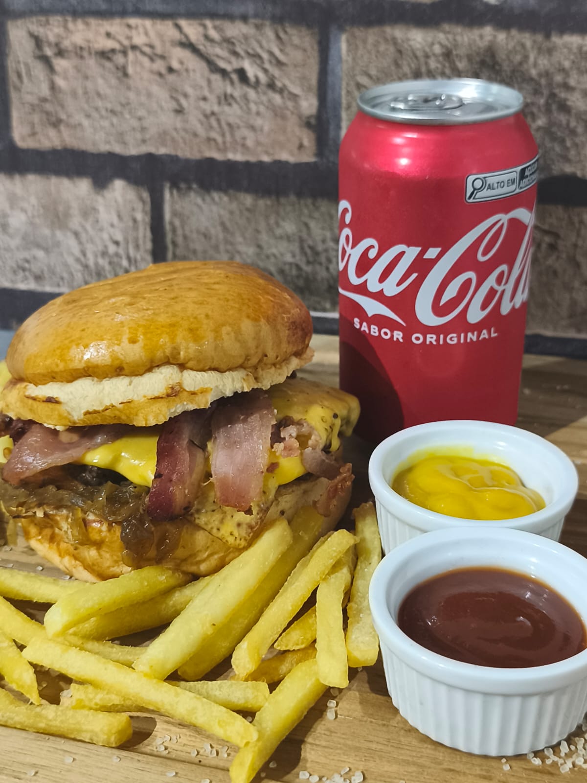 Cheese bacon com cebola caramelizada+fritas p