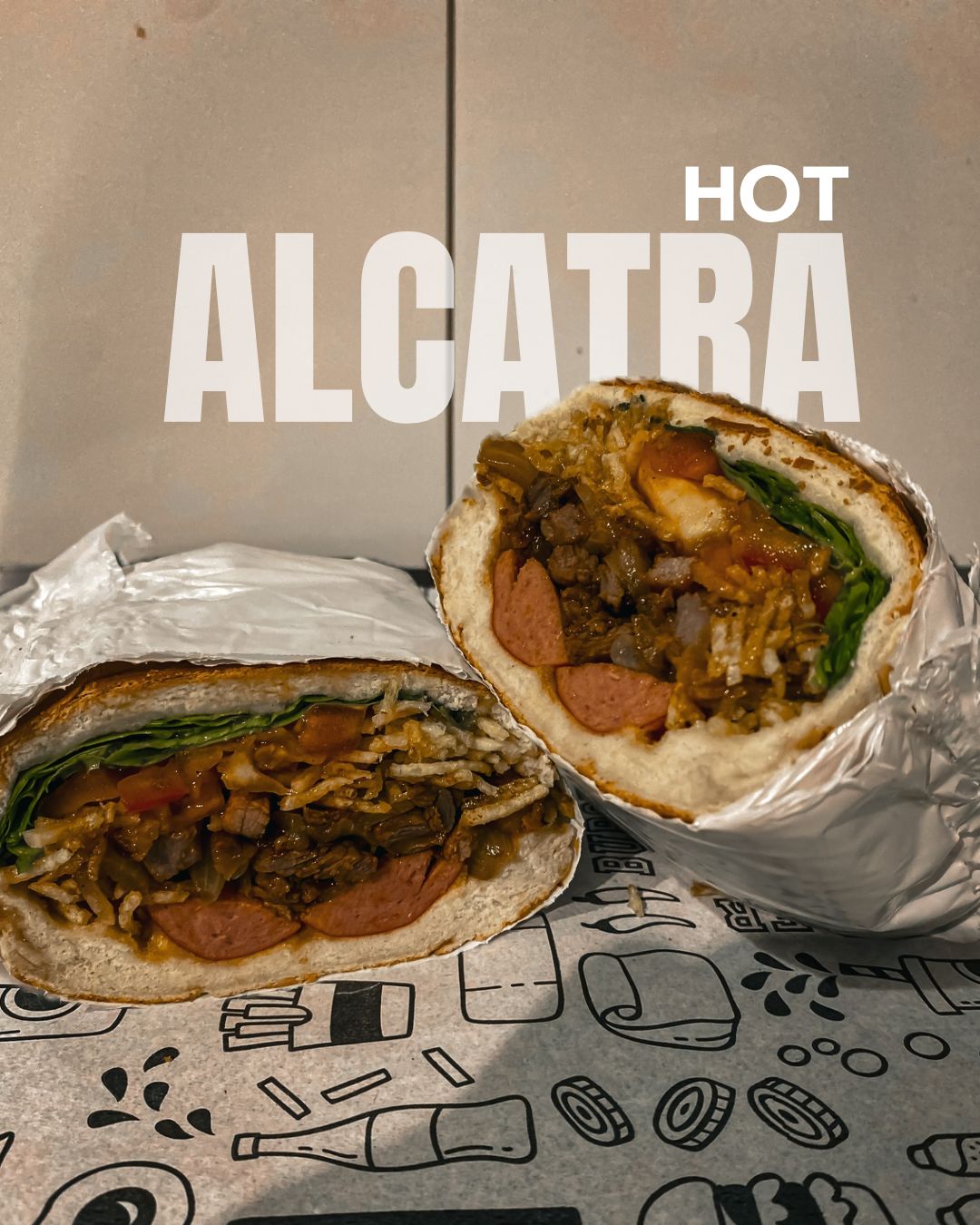 PÃO,1SALSICHA,TOMATE,ALFACE,BATATA,MAIONESE, KATCHUP E ALCATRA ACEBOLADA